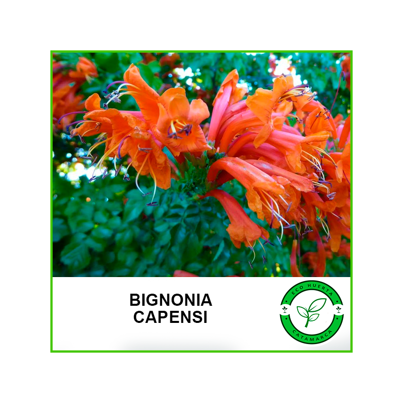La Bignonia Capensis es una planta trepadora de hoja semi-perenne de flor naranja-rojiza. Es una especie ideal para instalar en coberturas vegetales.